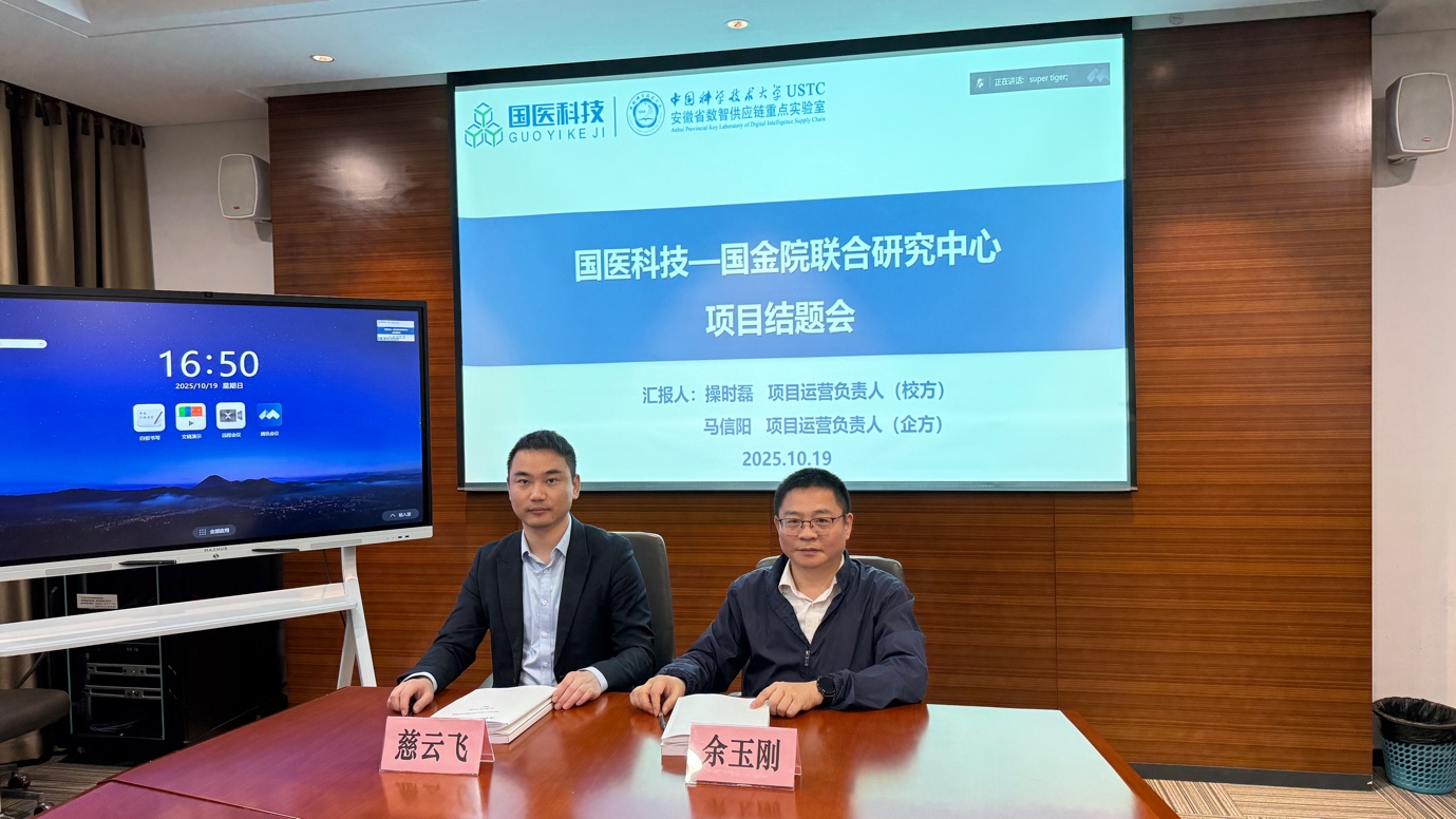 On October 19, 2025, the project conclusion exchange meeting of the Joint Research Center, established by the International Institute of Finance (hereinafter referred to as "IIF") and Anhui Engineering National Physician (hereinafter referred to as "GUO YI KE JI"), was successfully held at IIF. The meeting was attended by enterprise representatives including GUO YI KE JI President Ci Yunfei and Vice President Sun Nuo, as well as the Director of the Anhui Provincial Key Laboratory of Digital Intelligent Supply Chain (hereinafter referred to as the "Laboratory"), Professor Yu Yugang of the University of Science and Technology of China, and his research team. The meeting focused on scientific research progress and innovative practices in the field of medical consumables supply chain (SPD), highlighted the outcomes of the project conclusion, and engaged in in-depth discussions on topics such as further research directions and the synergistic development of industry-academia-research collaboration.